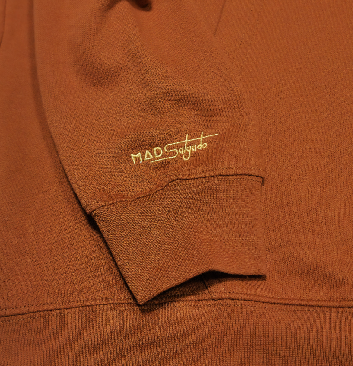 Our Classic Caramel Hoodie for this collaboration featuring Salgado Signature and the representation of MADSalgado Logo in black and white. Vision Beyond Sight