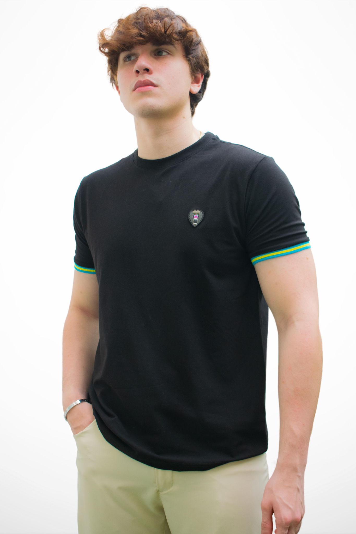 The BLACK AND YELLOW CUFF RIBBED CREW NECK is a MΔD CHUCK™ go-to.