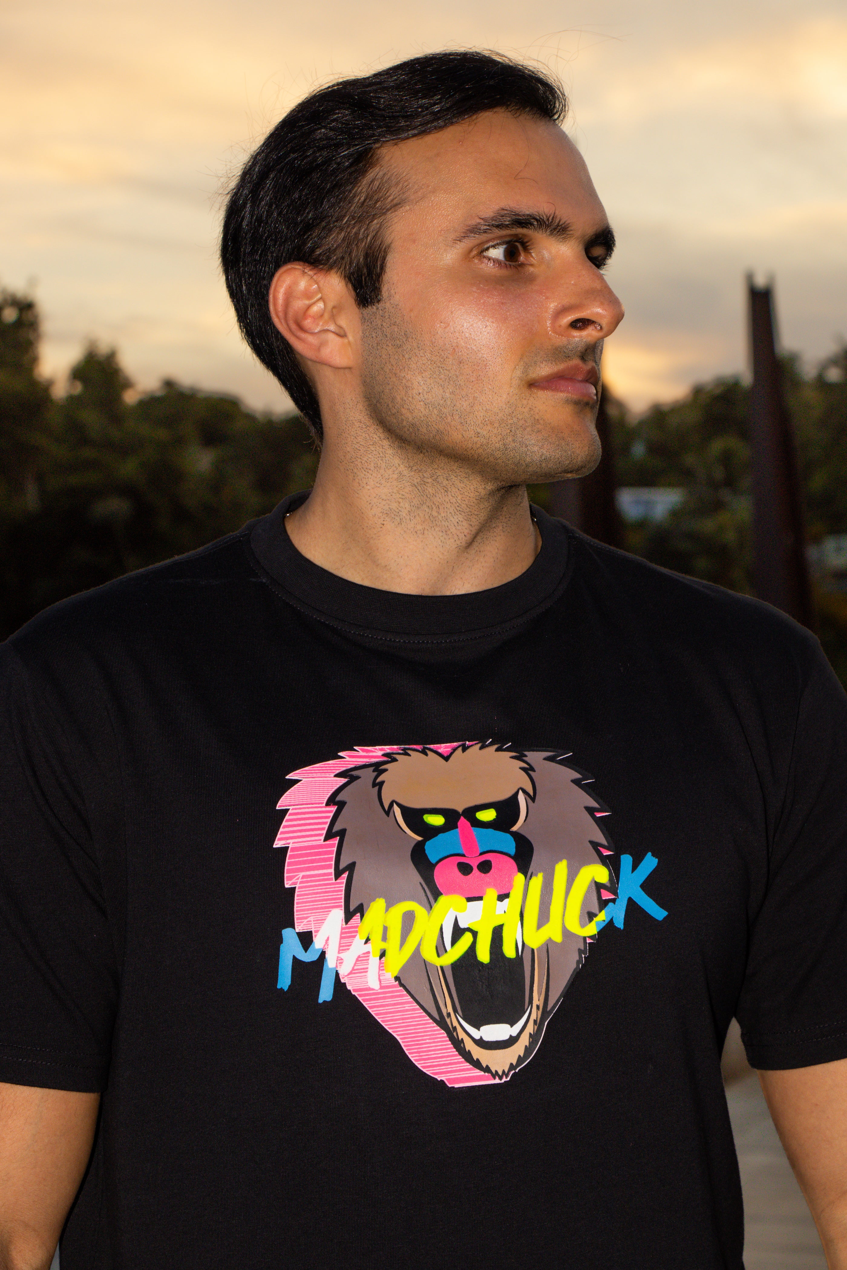 Meet the new Graphic Print Tees from MΔD CHUCK™! Featuring our iconic logo in bold colors and graphics, crafted from premium cotton with the same top quality as our bestselling crewnecks. This tee adds a colorful twist for a standout look.