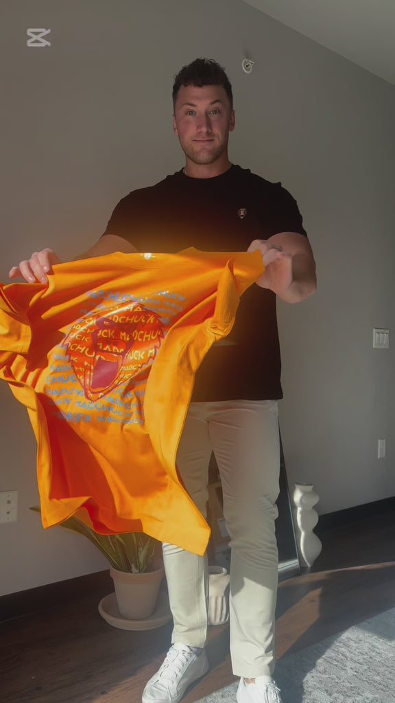 Meet the new Graphic Print Tees from MΔD CHUCK™! Featuring our iconic logo in bold colors and graphics, crafted from premium cotton with the same top quality as our bestselling crewnecks. This tee adds a colorful twist for a standout look.