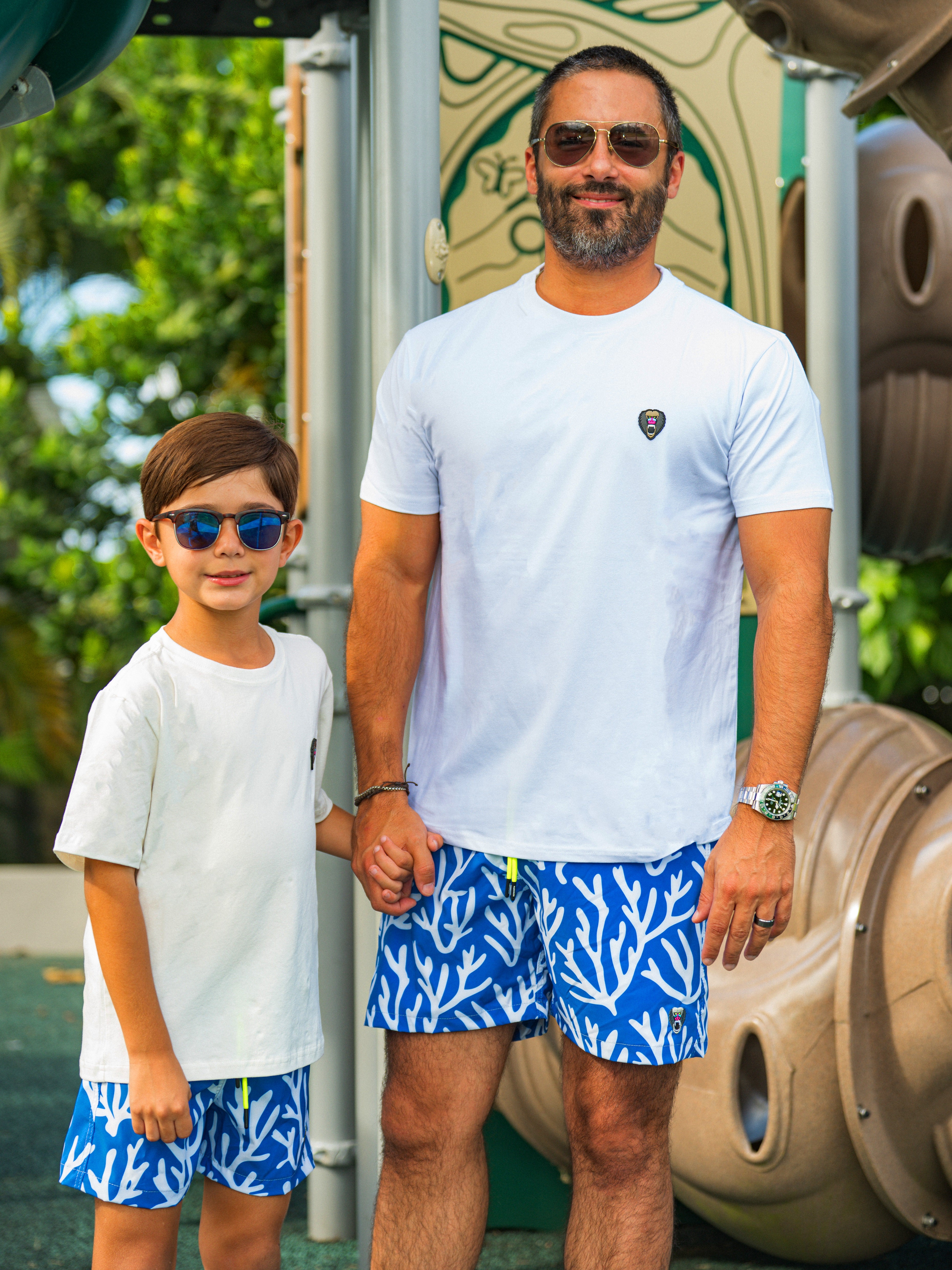 Dad model is wearing T-shirt M and Volley M.