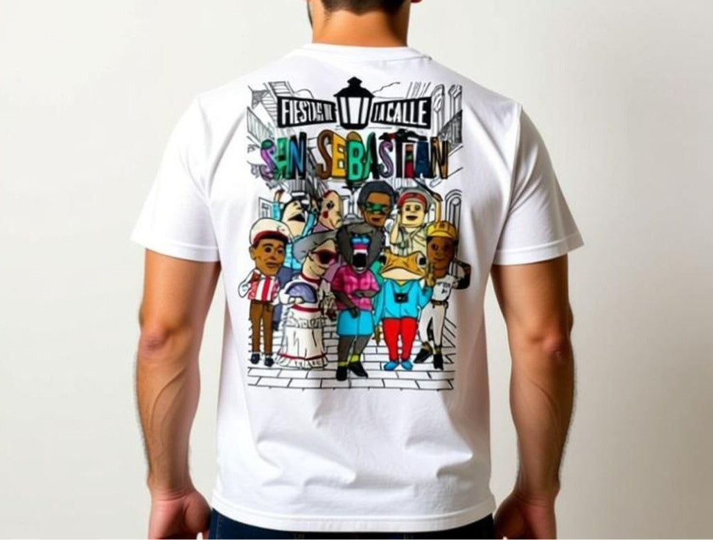 This limited-edition San Sebastián tee brings the energy of the fiestas straight to your fit. Made from a polyester stretch fabric, it’s lightweight, breathable, and built for all-day comfort as you walk the calles, dance, and celebrate. Featuring a bold front graphic inspired by the iconic festival, this tee is designed to move with you and keep the vibe alive.