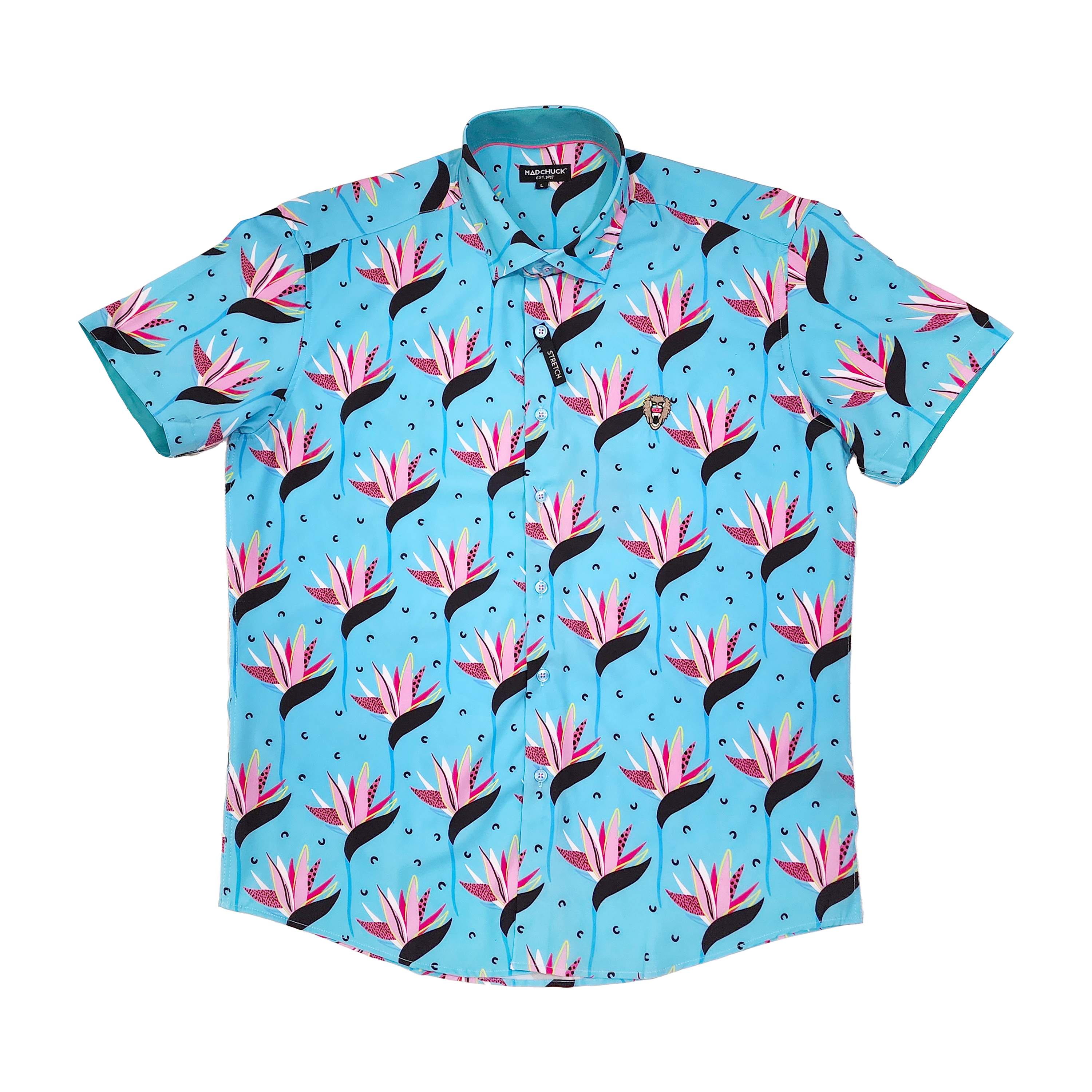Introducing our sleek and stylish NEW WATER LILLIES PRINT WOVEN shirt, designed with both comfort and fashion in mind. Crafted from a premium blend of 60% cotton, 37% polyester and 3% spandex, this shirt offers superior comfort, breathability and stretchability that moves with your body, making it perfect for any occasion. It has a hidden button down collar which employs hidden button loops under the collar, cool classic trimmings, and of course an embroidered MAD logo. So why wait? Add this versatile and stylish shirt to your collection today and experience the ultimate combination of comfort and style.
